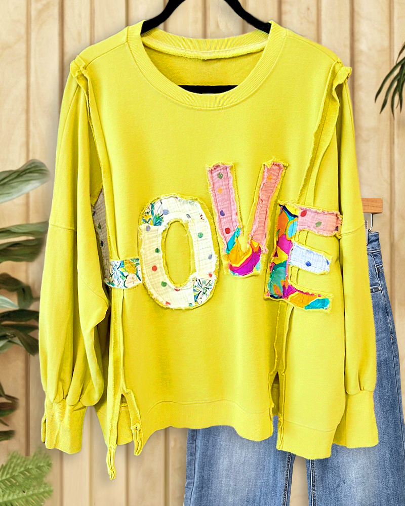 LOVE Applique Stylish Side Slit Drop Shoulder Sweatshirt