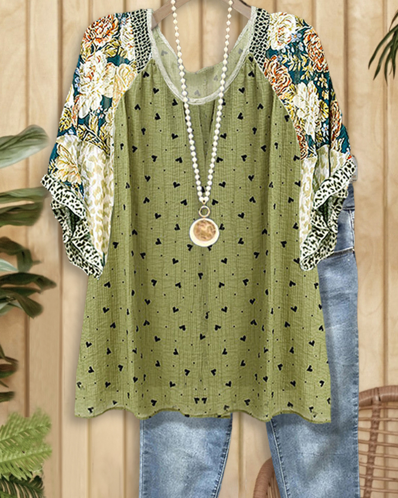 Patchwork Heart & LOVE Applique Stylish Batwing Sleeve Blouse