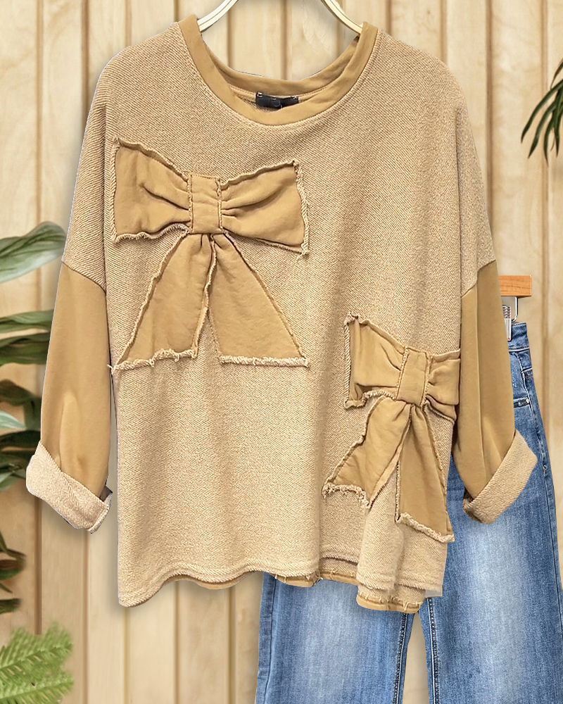 Patchwork Bow Applique Stunning Drop Shoulder Blouse