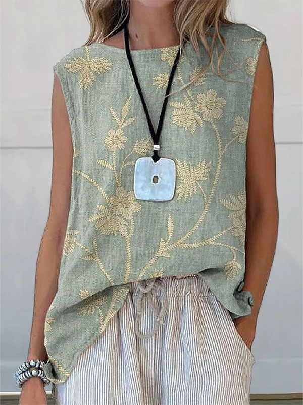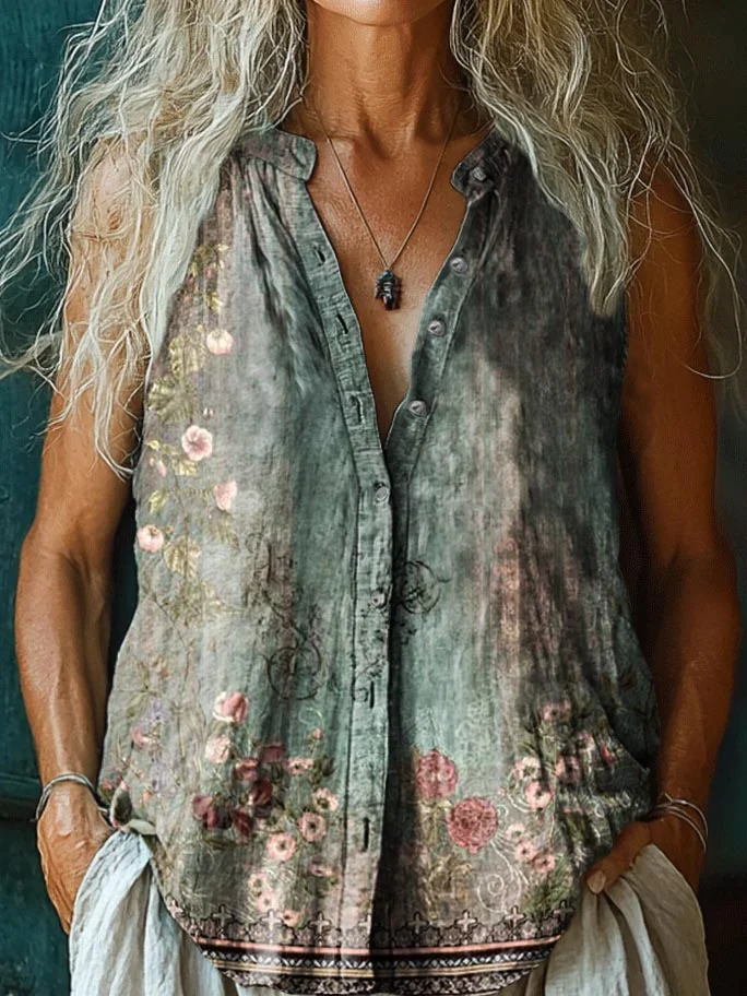 Women's Loose Retro Style Printed Short Sleeves Bohemia Vest