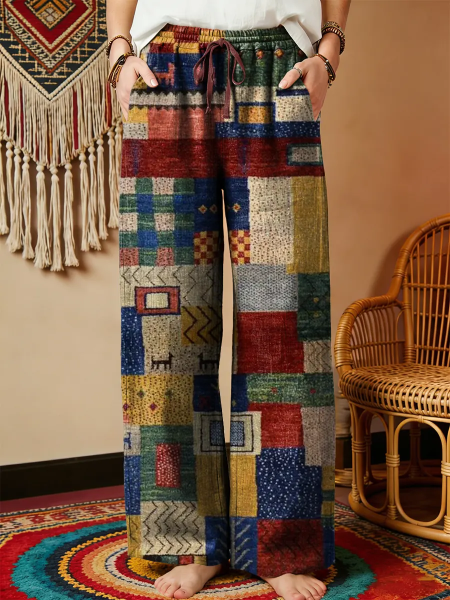 Ethnicity Colorful Patchwork Totem Women's Printed Cotton And Linen Casual Pants