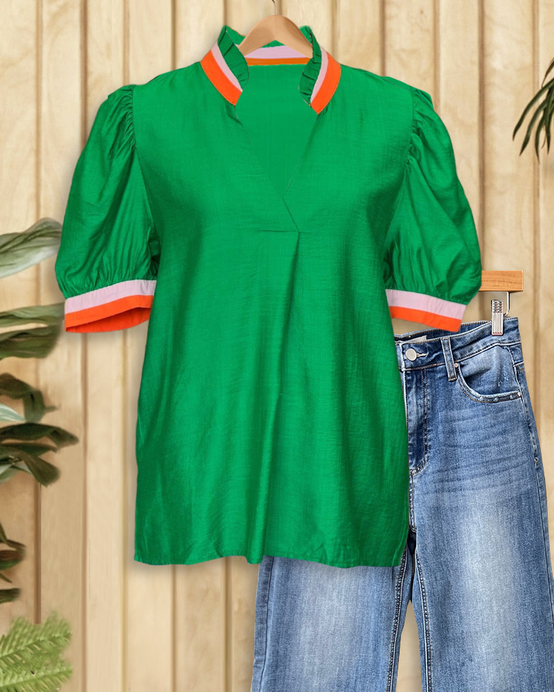 Hit Color Patchwork Urban Puff Sleeve Blouse