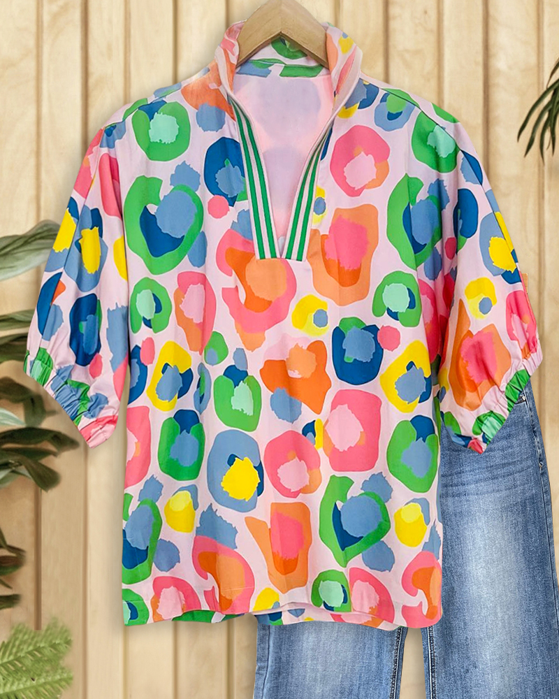 Watercolor Print Simple Puff Sleeve T-Shirt