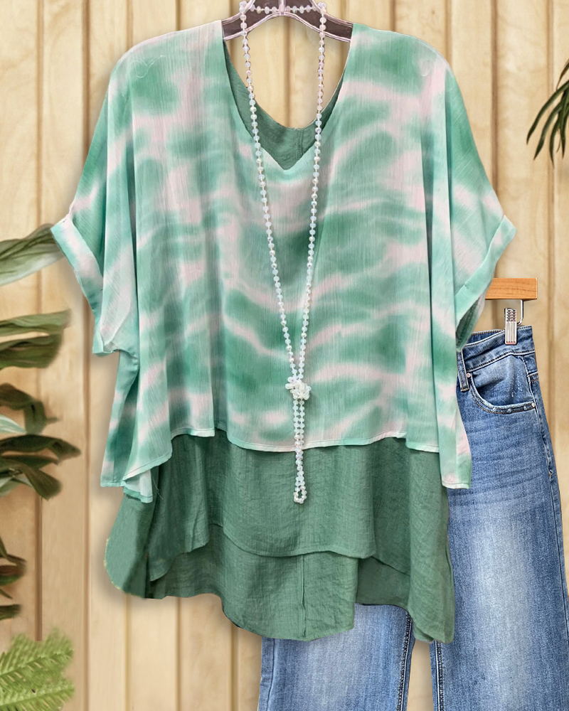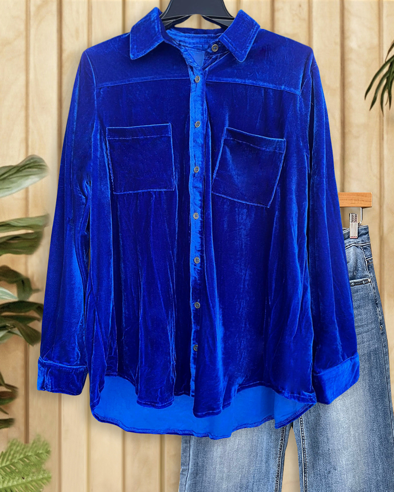 Mixed Velvet Patchwork Relaxed V Neck Blouse