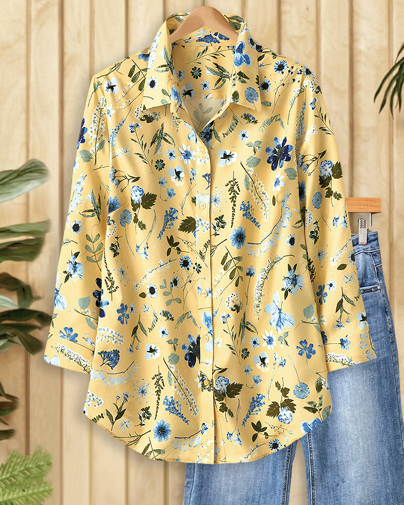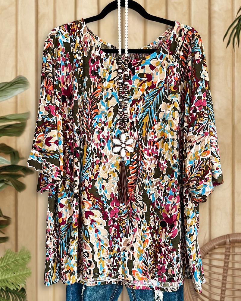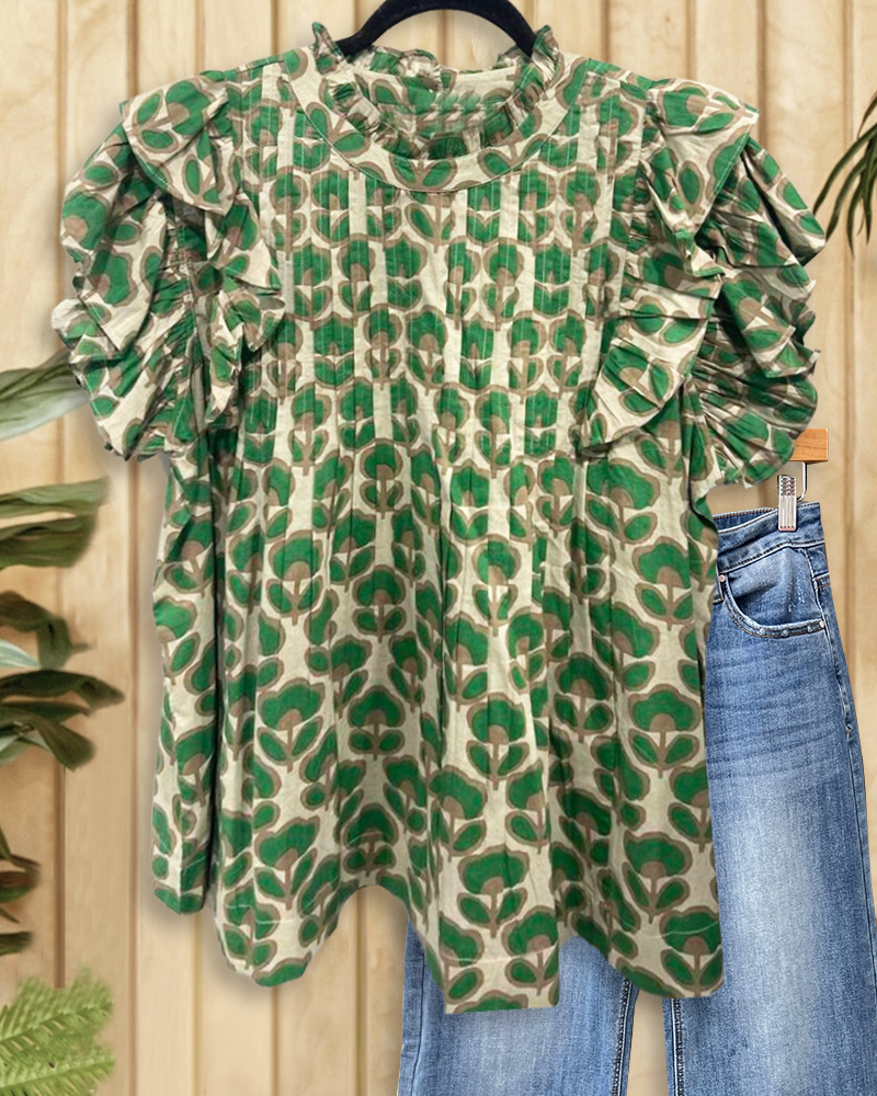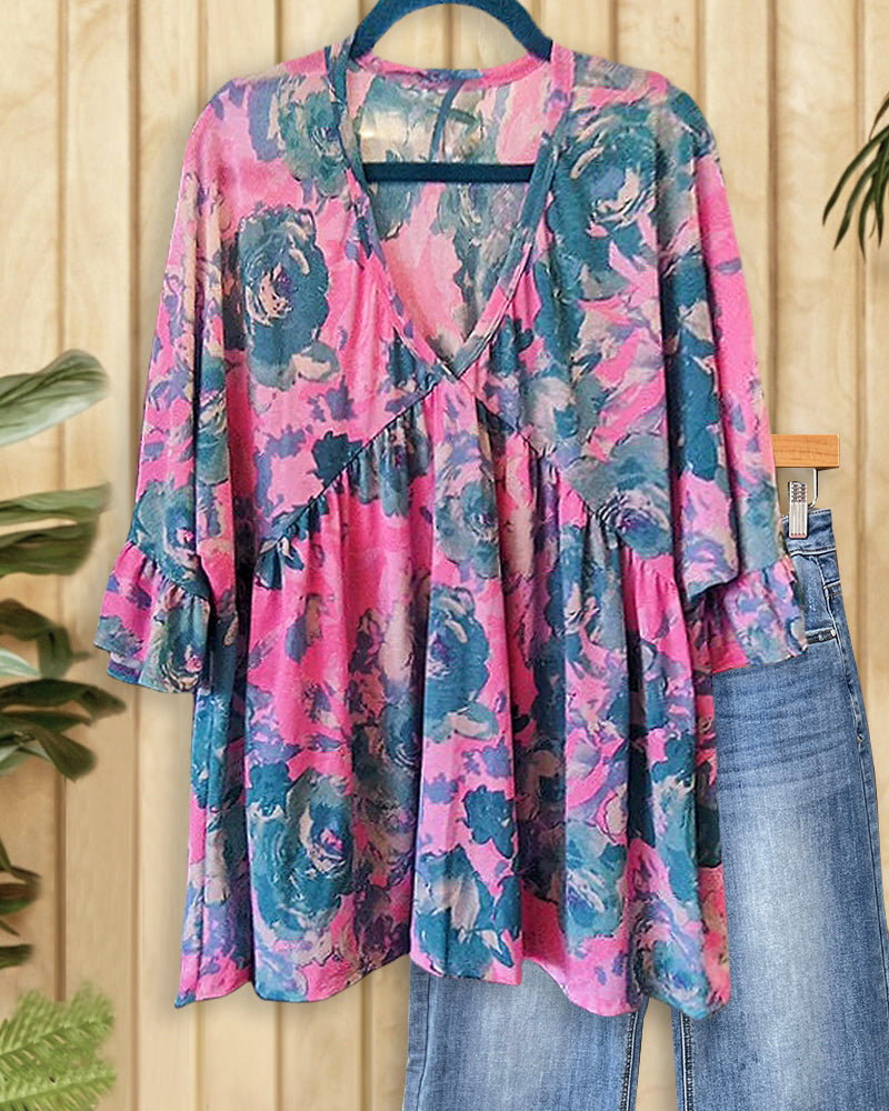 Floral Print Ruffle Sleeve V Neck Floaty Blouse