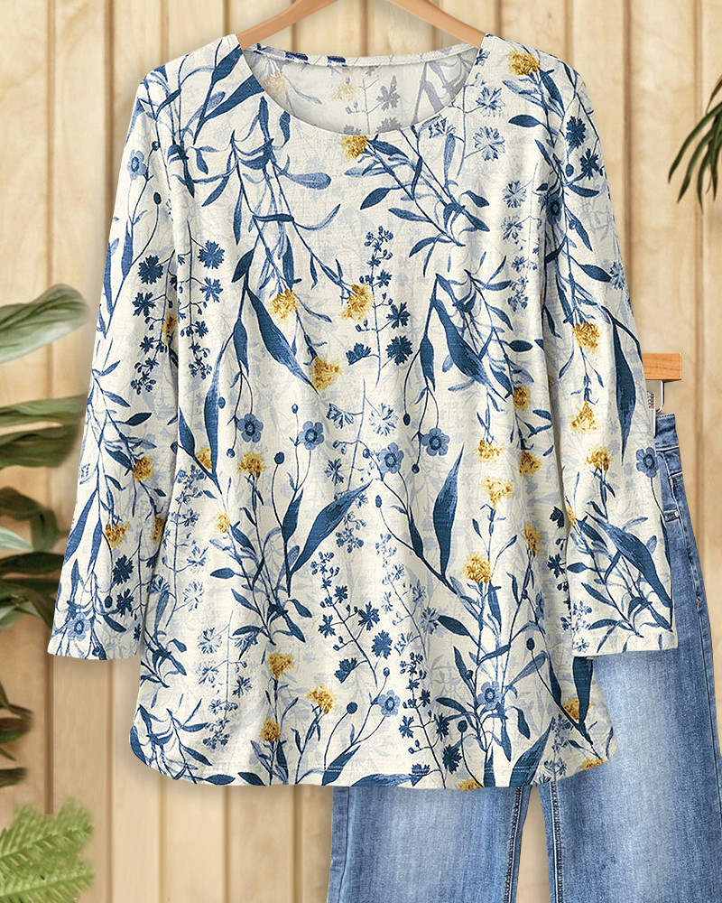 Floral Print Round Neck Rocking Smocked T-Shirt