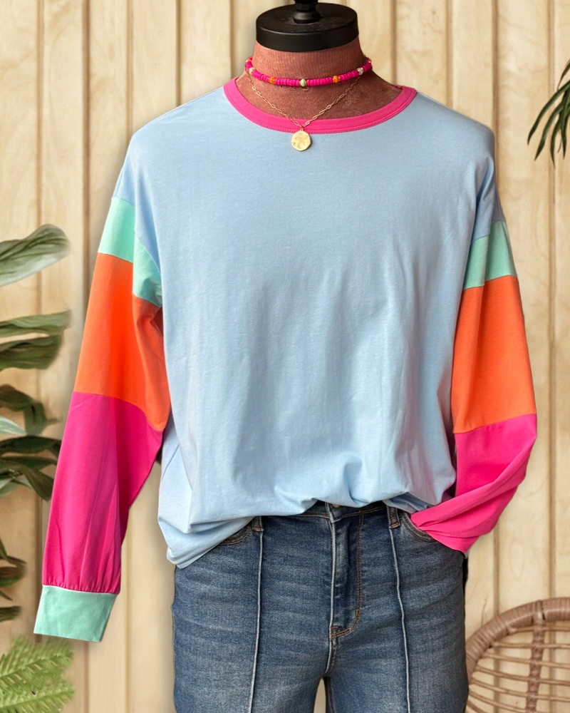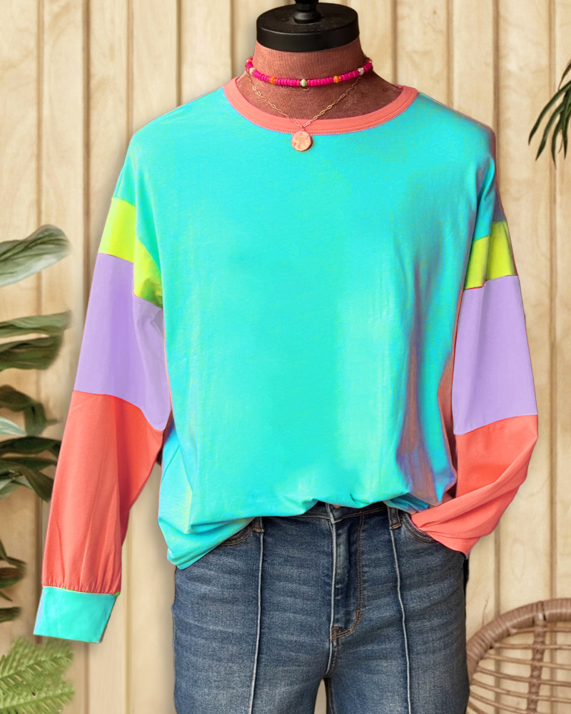 Color Block Bright Seamed Detail Drop-Shoulder Shirt