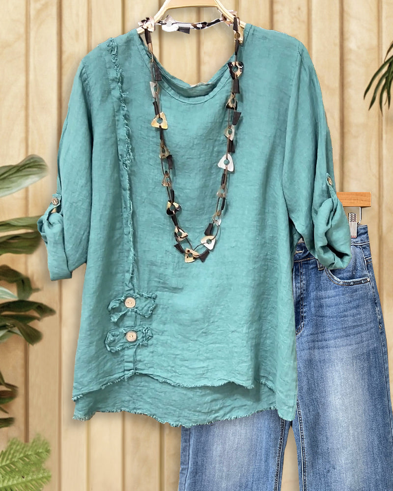 Solid Color Frayed Seamed Detail Laid Back Blouse