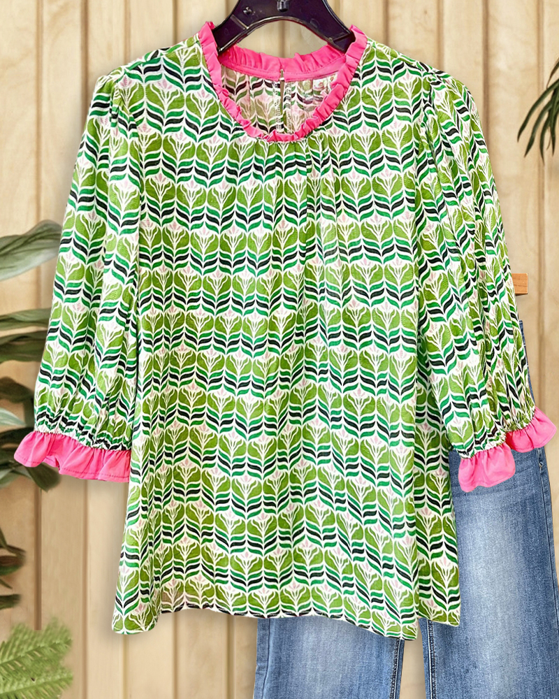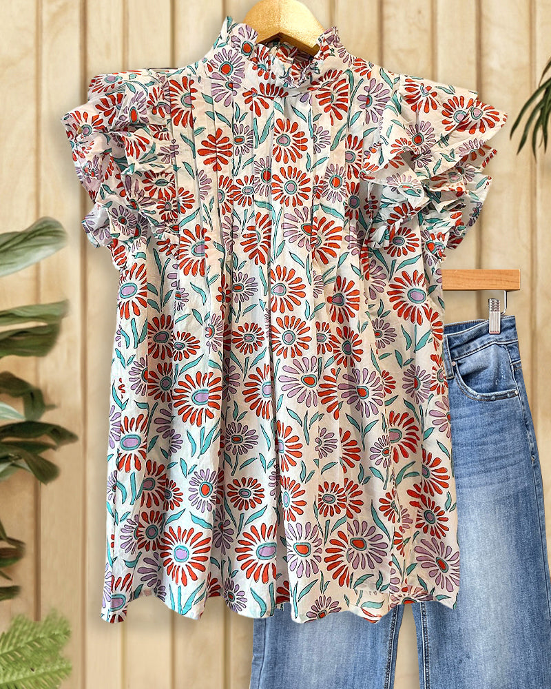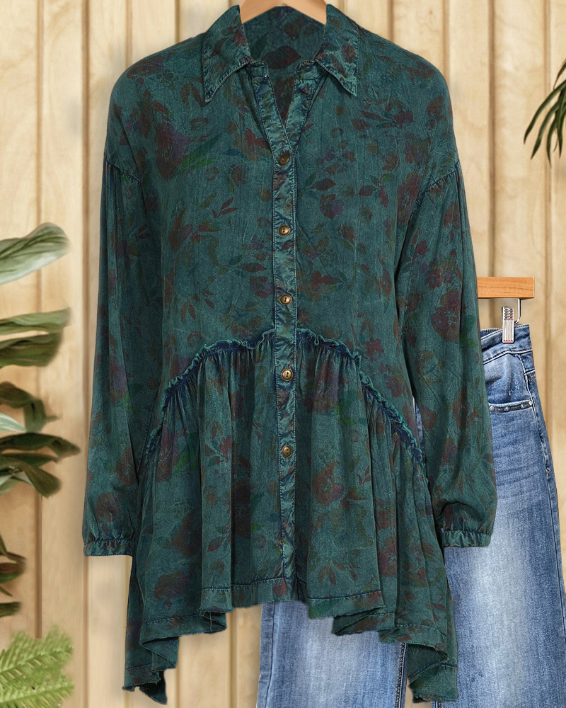 Floral Print Rocking Pleated Ruffled Blouse
