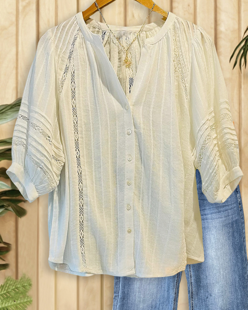 Solid Color Lace Patchwork Urban Button Blouse