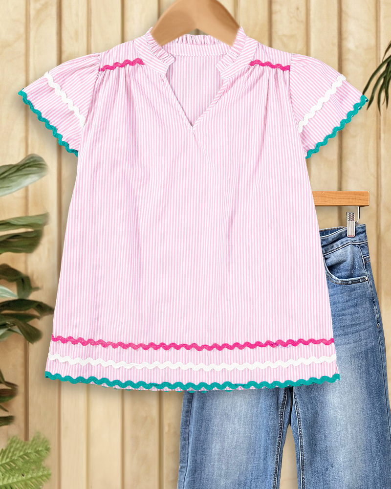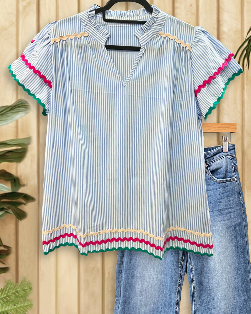 Patchwork Striped Smart Ruffle Sleeve Blouse
