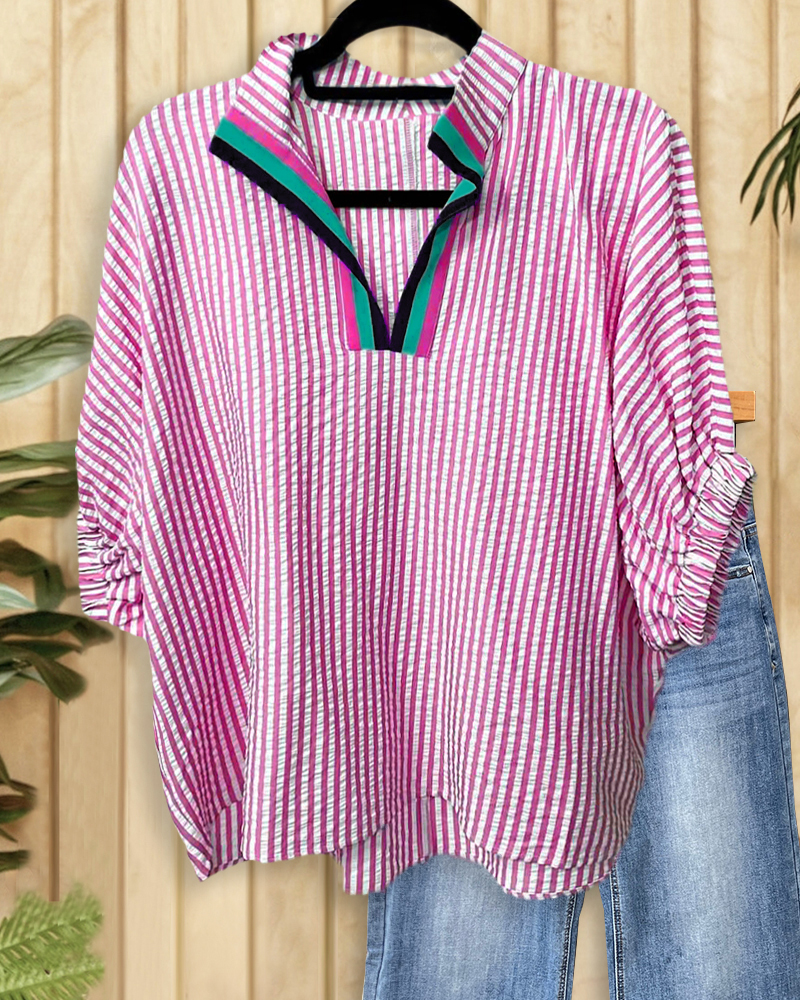 Striped Cozy Batwing Sleeve Blouse