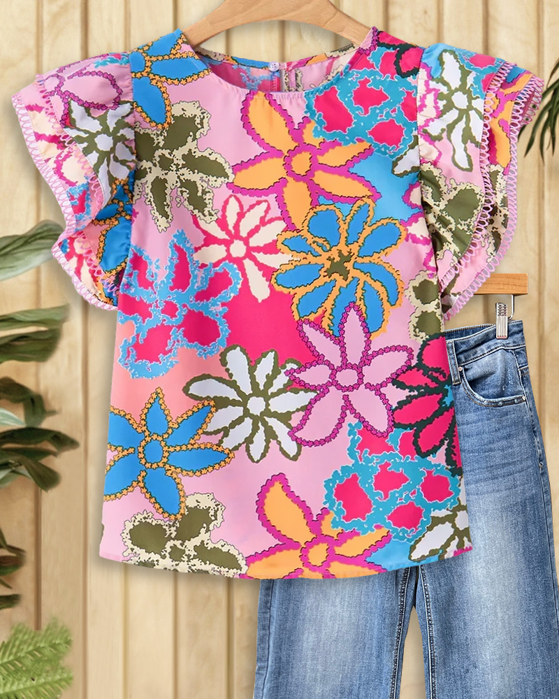 Vibrant Floral Print Girly Ruffles T-Shirt
