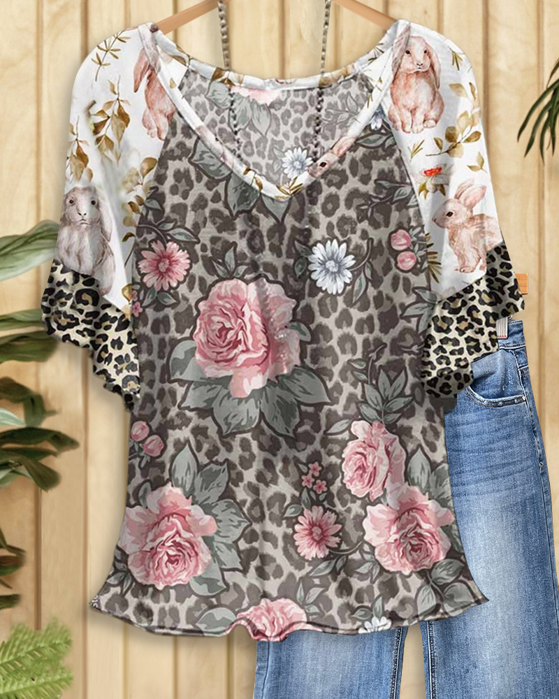 Polka Dot & Floral Print Pastoral Raglan Sleeve T-Shirt