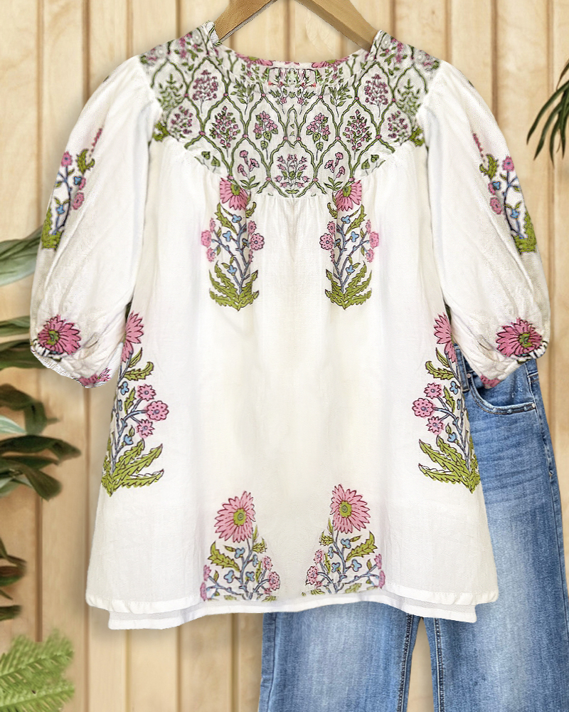 Floral Print Pastoral Round Neck T-Shirt