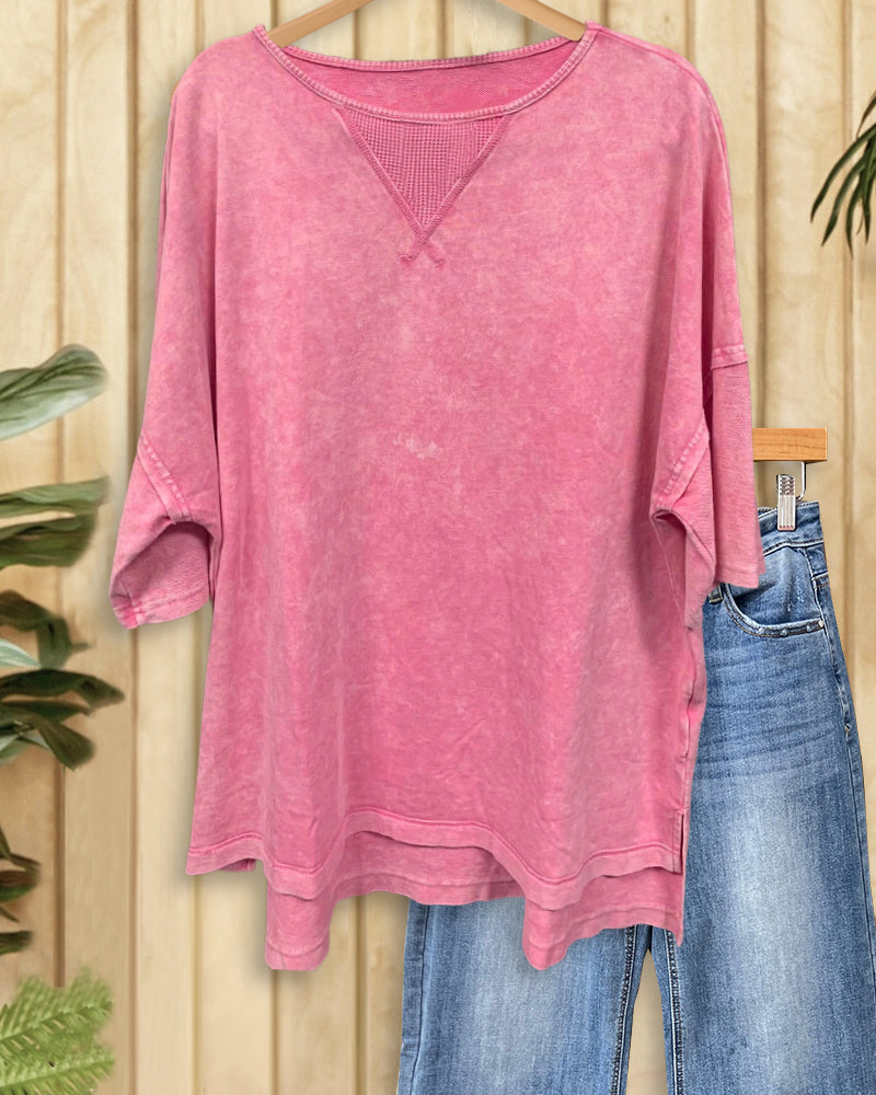 Solid Color Round Neck Urban Casual Wear Blouse