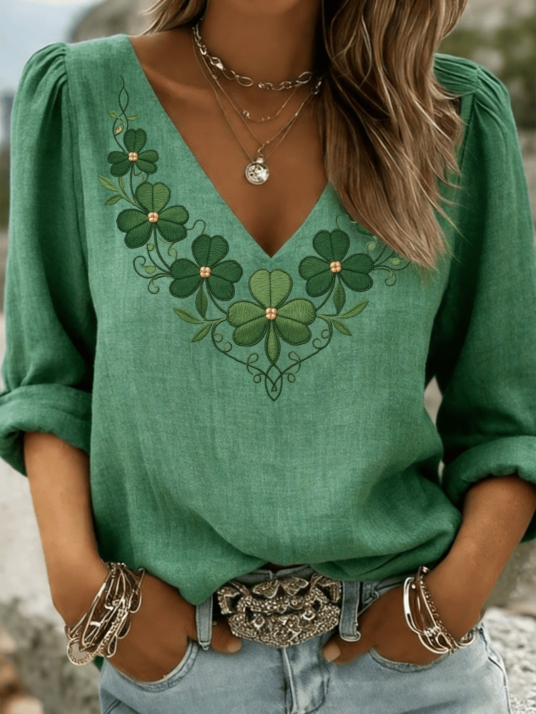 Women's St. Patrick's Day Print V-Neck Shirt