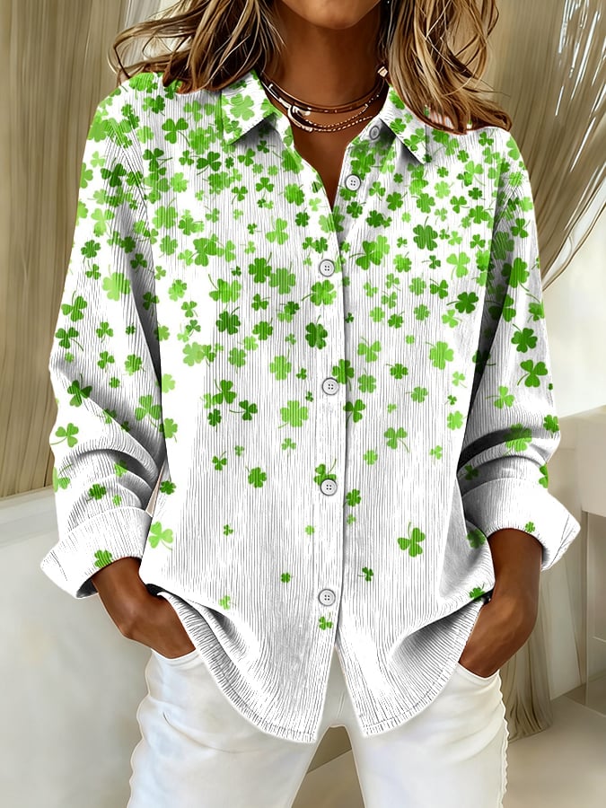 Women's St. Patrick's Day Shamrock Print Corduroy Design Shirt